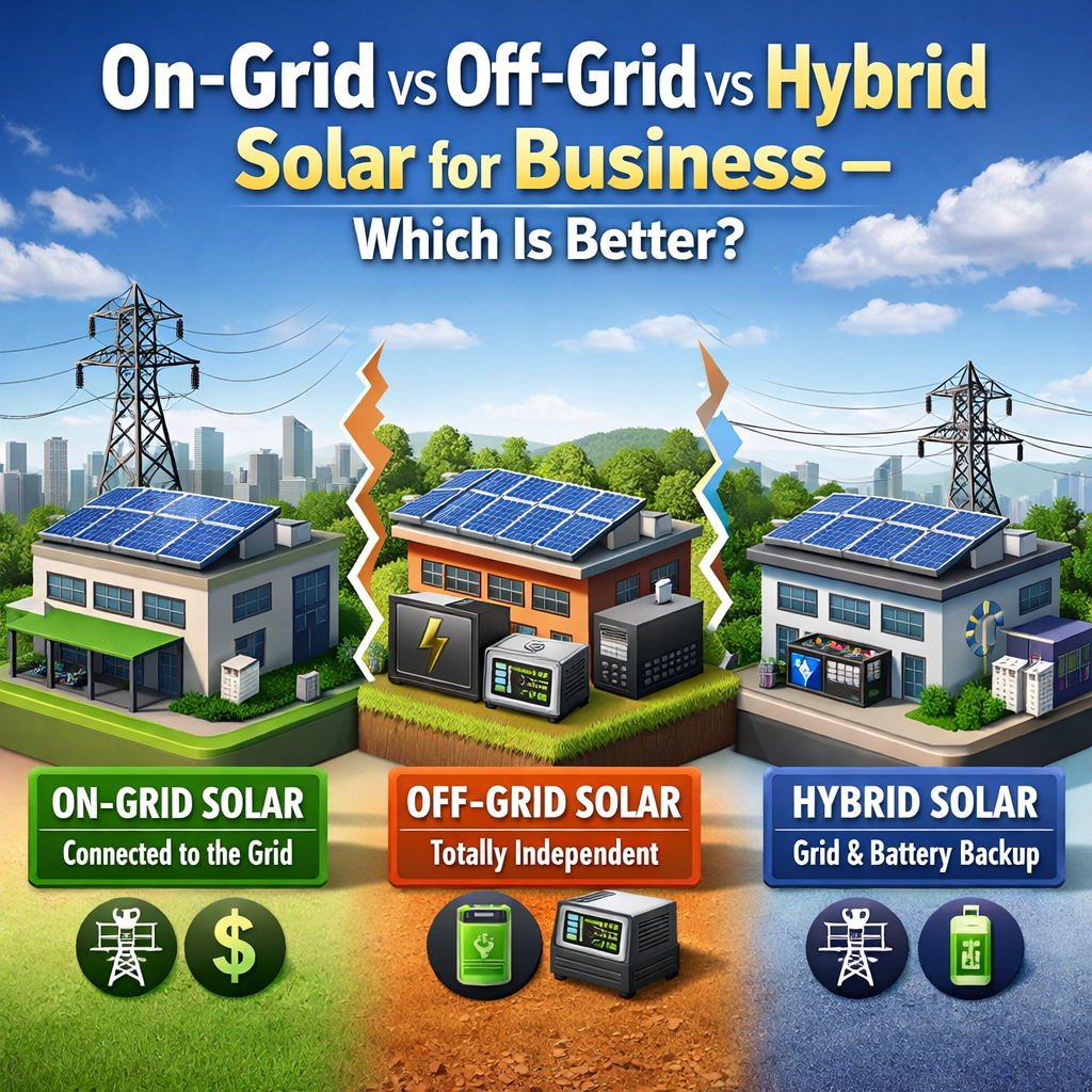 On-Grid vs Off-Grid vs Hybrid Solar for Business – Which Is Better?