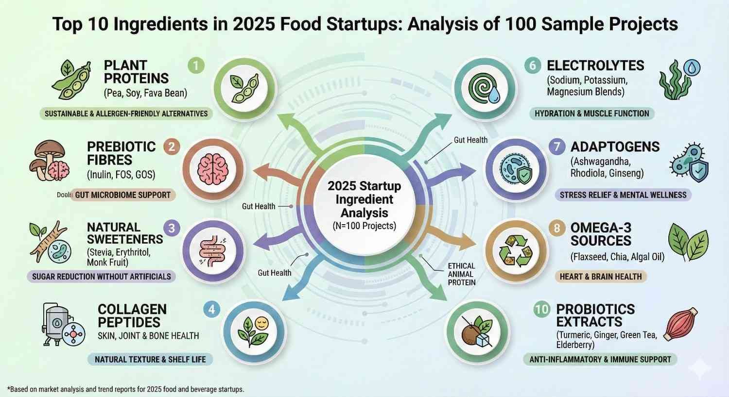 Top Top 10 Ingredients Used in Food Startups in 2025 — Analysis of 100 Sample Projects