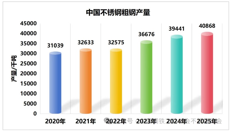 In 2025, China's stainless steel crude steel output will be 40.8681 million tons, an increase of 1.427 million tons year-on-year, an increase of 3.62%.