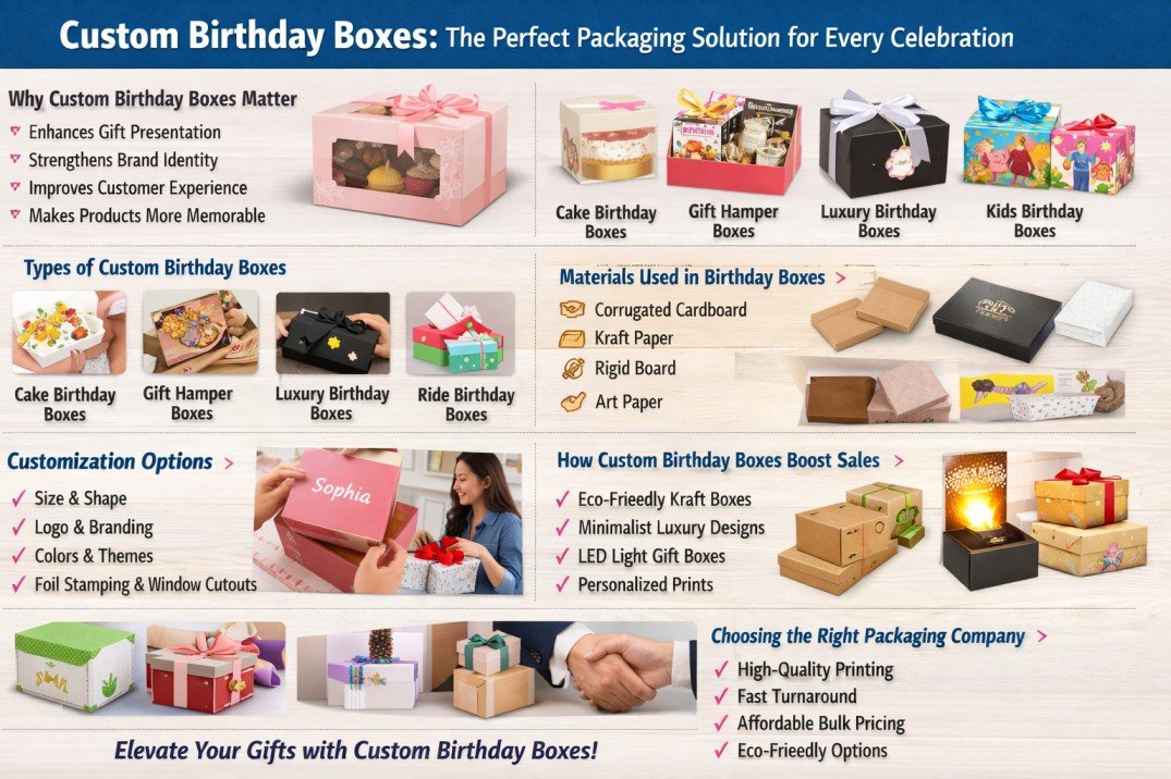 Custom Birthday Boxes are more than just packaging they are part of the gift experience. With the right design and material, they can turn a simple product into a memorable celebration item. For businesses, investing in custom packaging is a powerful way to increase brand value and customer satisfaction.
